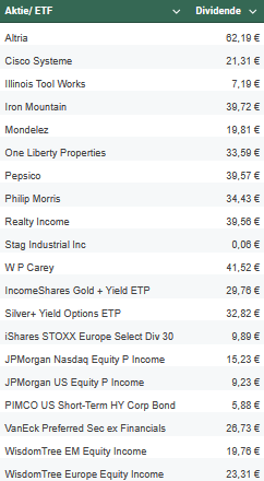 Folgende Aktien/ ETFs haben Aussgeschüttet